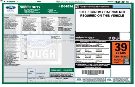 A window sticker is provided in the photo gallery, and a partial list of notable equipment reported by the seller includes: